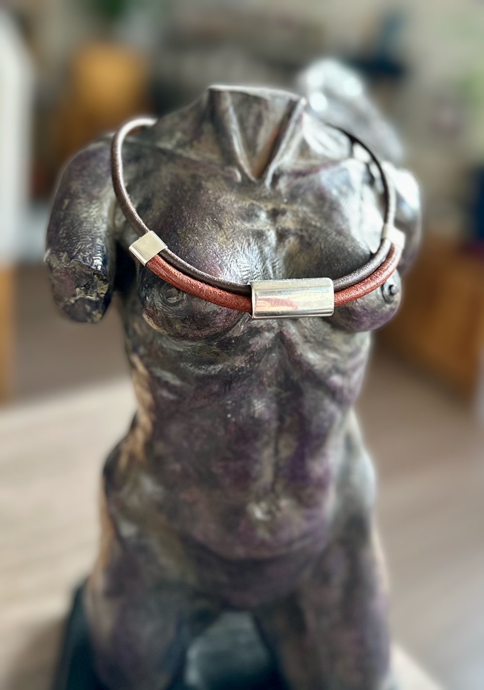 Leather and metal necklace