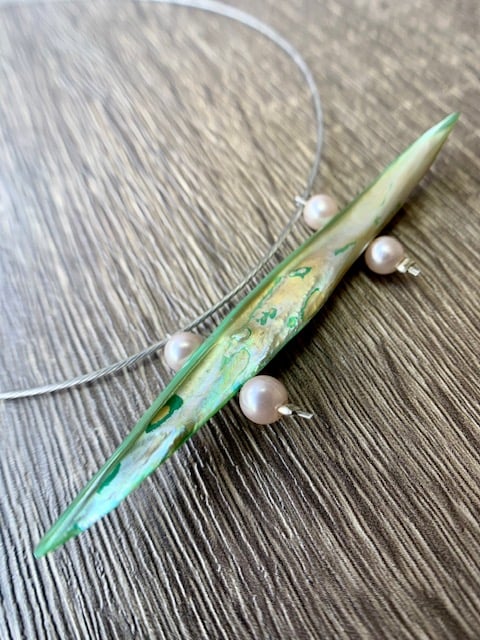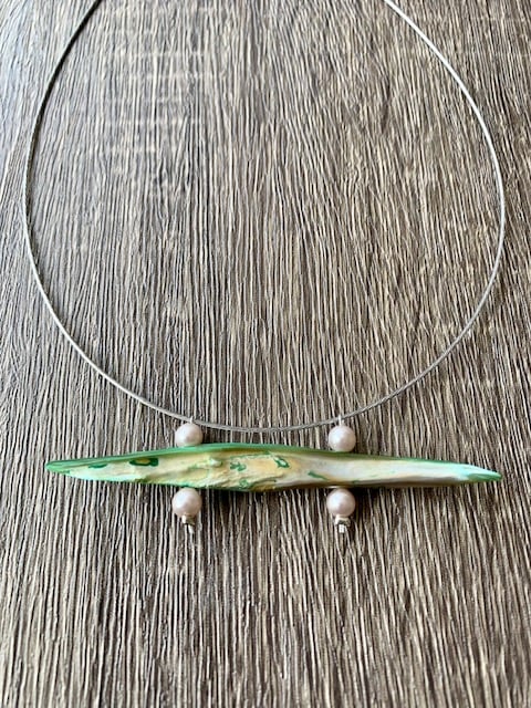 This unique necklace I made with nacre, water pearls and wire.
